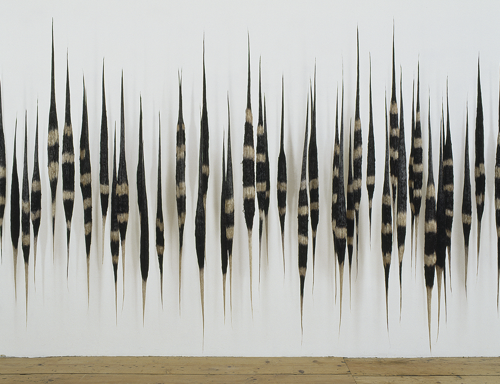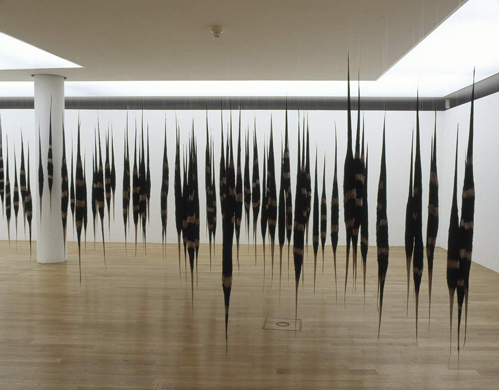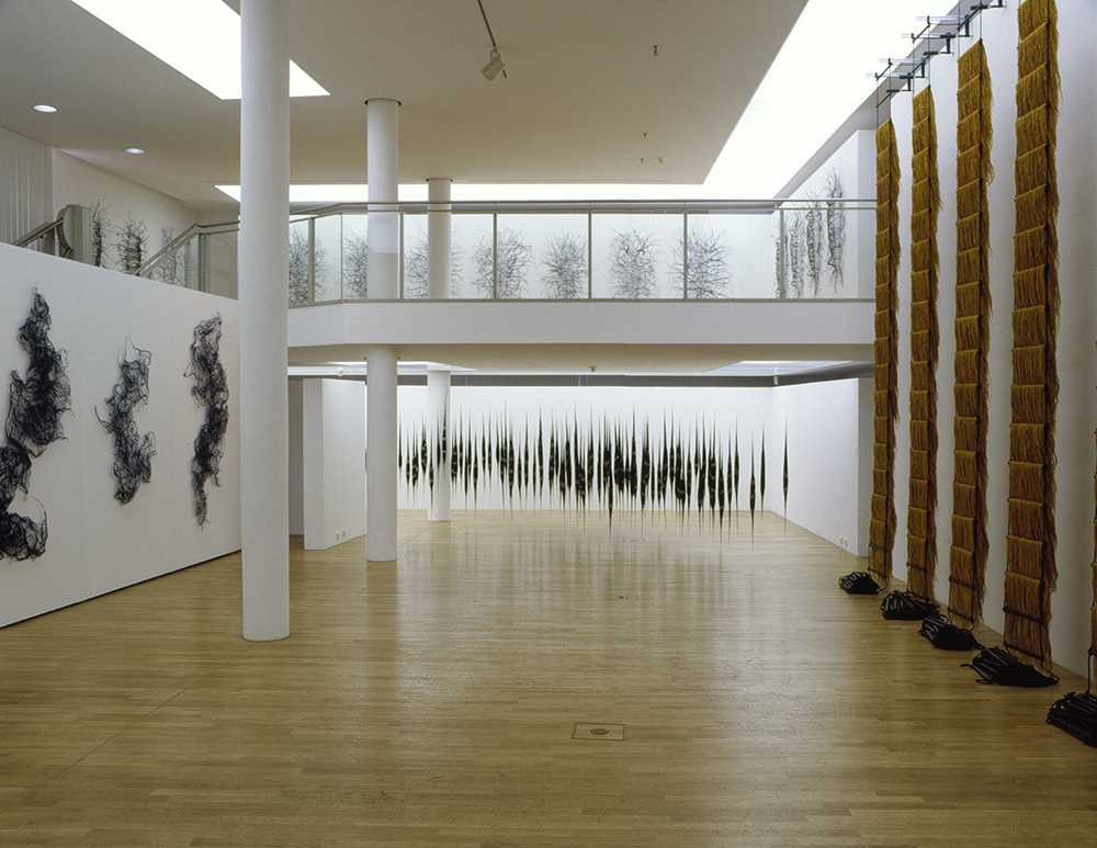 Matrix, 2004hempfibres, pigments120 hanging objects, length 120 cm eachInstallationen, kunst galerie fürth 2004