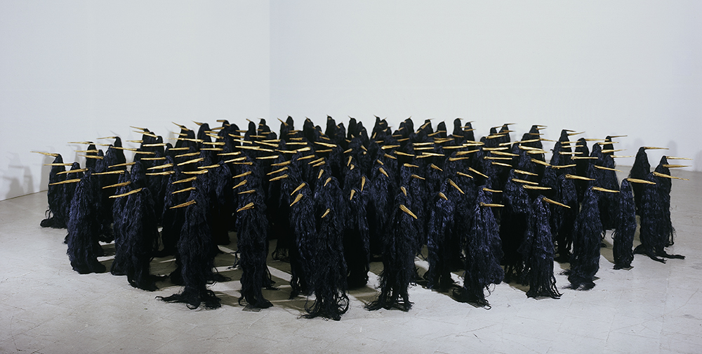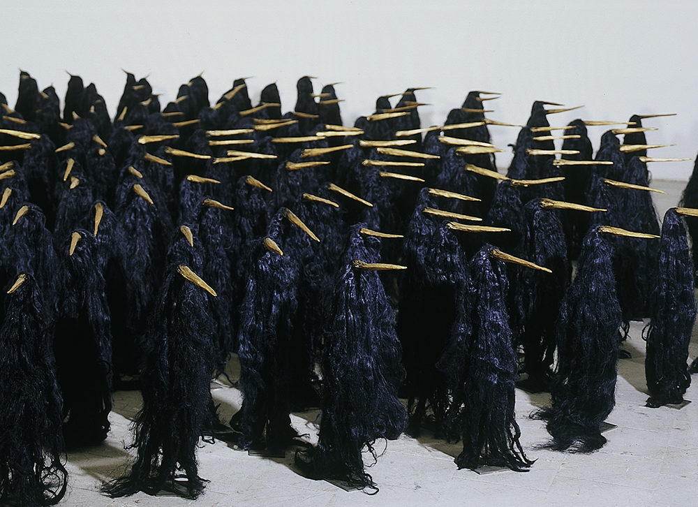 Messengers / Botinnen, 1995 / 2000hemp fibre, pigments, synthetic resin, iron200 objects, height 60 cmGabriele Münter Preis Ausstellung 2000, Bonn, Leipzig