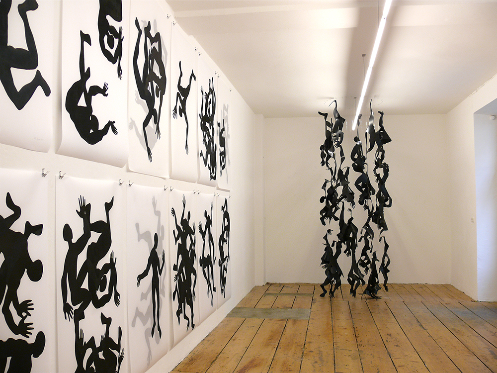 Shadows / Schatten, 2018rubber, Ø 160 cm, height 350 cmmoving on, Galerie Anais, München 2018