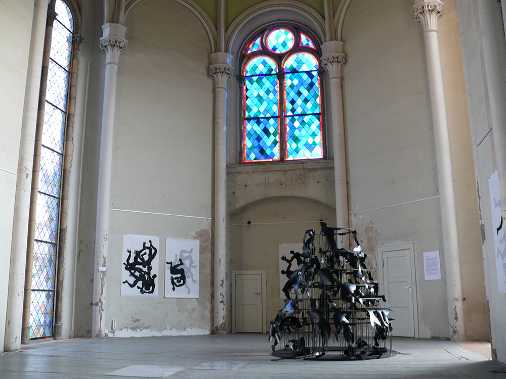 Shadows / Schatten, 2018rubber, iron, woodØ 200 cm, height 200 cmSchatten, Zionskirche Berlin 2018