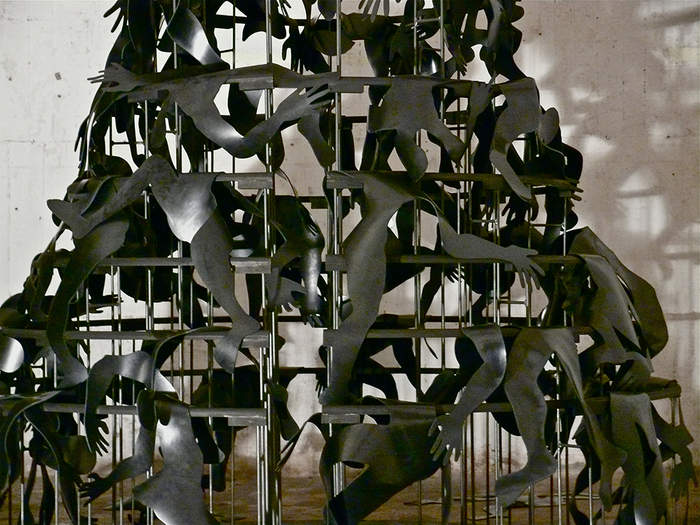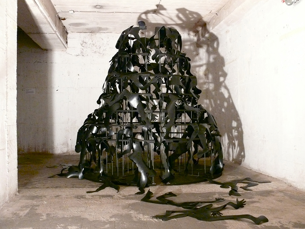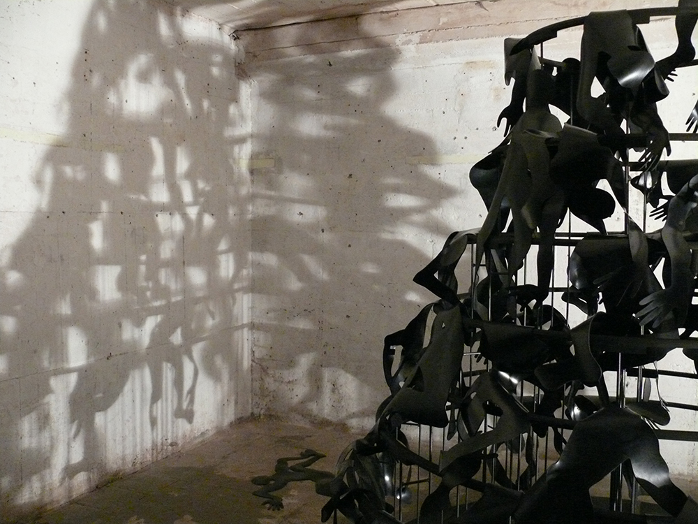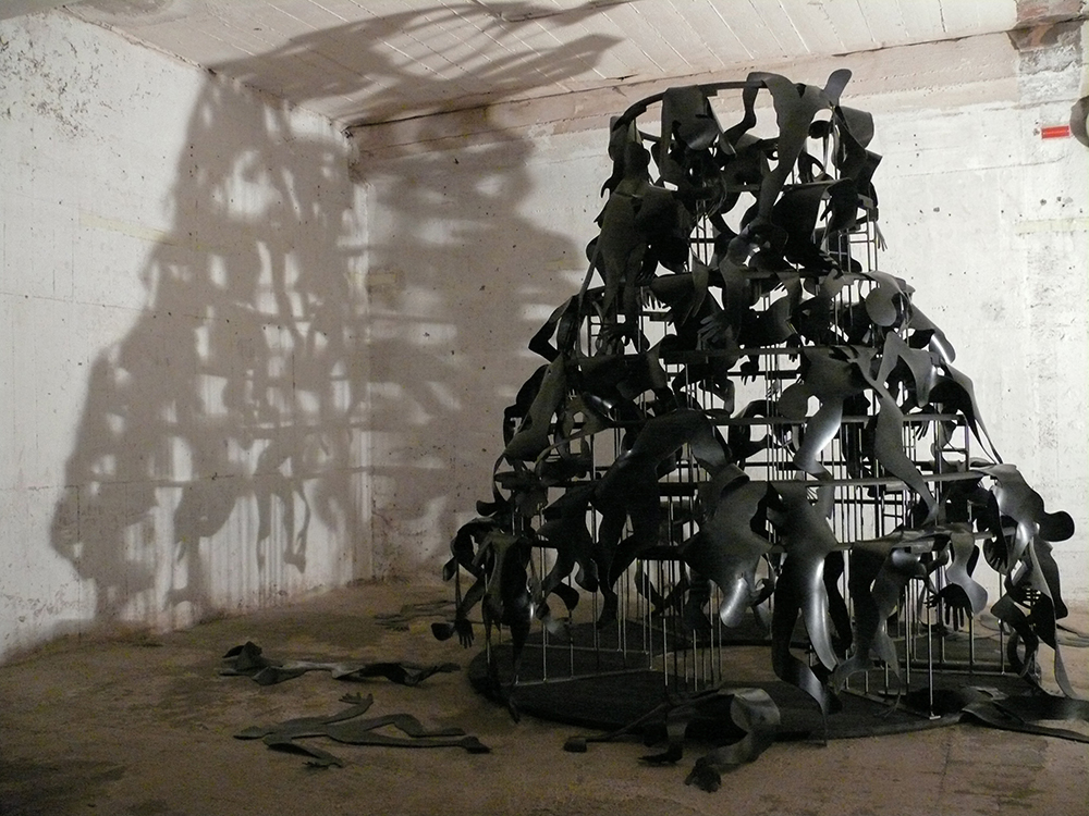 Shadows / Schatten, 2019iron, wood, rubberØ 200 cm, height 200 cmRaumgefühl, Bunker k01, Köln 2019