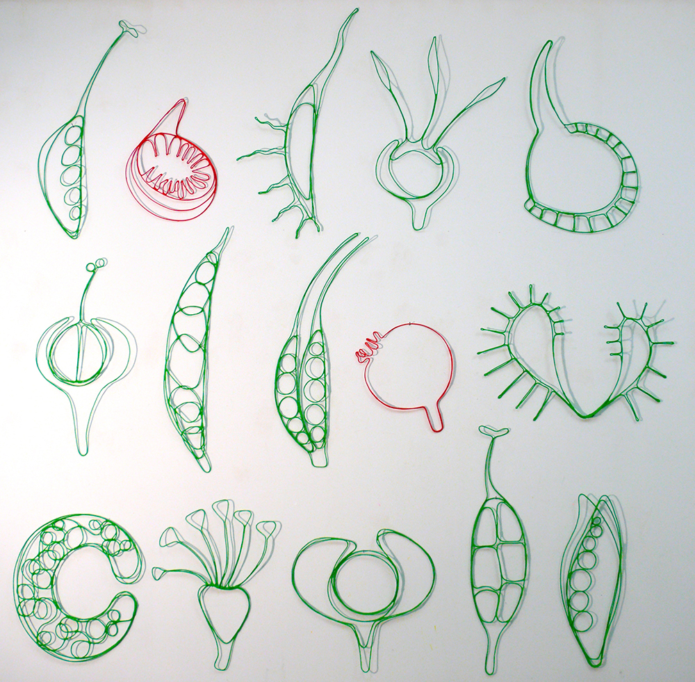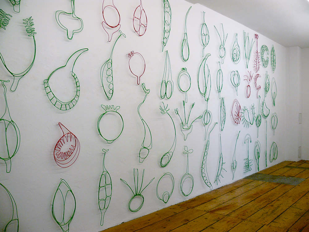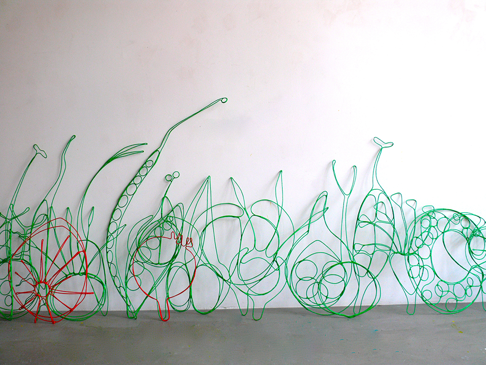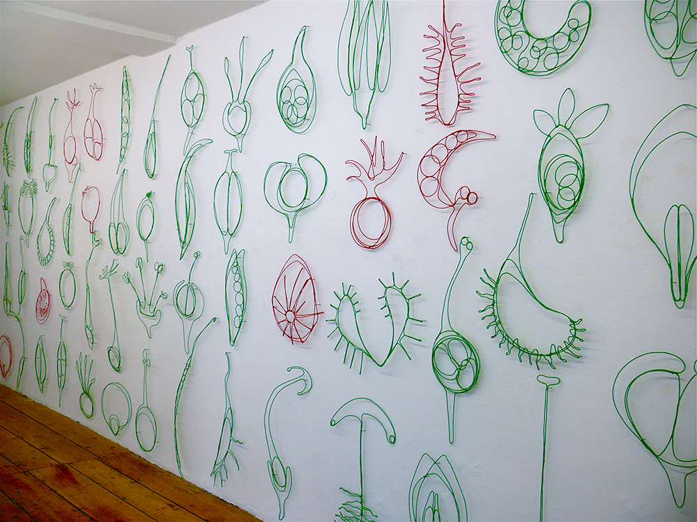 Spying On Plantlove, 2023wall installation, wire, acrylic resin, pigments60 objects of varying dimensions, approx. 45 x 90 cm each