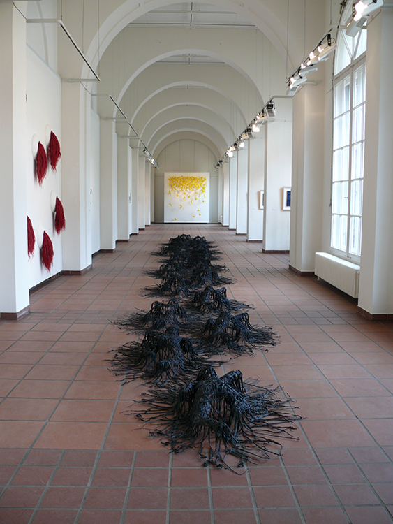 Travellers / unterwegs II, 2011 / 2016hemp fibre, pigments, acrylic resin20 objects about 160 x 140 x 30 cm eachInstallationen, Galerie im Körnerpark, Berlin 2012